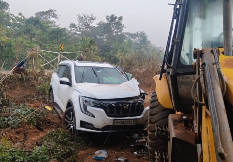 मुंबई – गोवा महामार्गावर वेताळ बांबर्डे पूल येथे मुंबईहून गोव्याच्या दिशेने जाणारी कार रस्त्याच्या कडेला कोसळली. यामध्ये कारचे मोठ्या प्रमाणात नुकसान झाले आहे. ही घटना आज पहाटे ४ वाजण्याच्या सुमारास घडली.