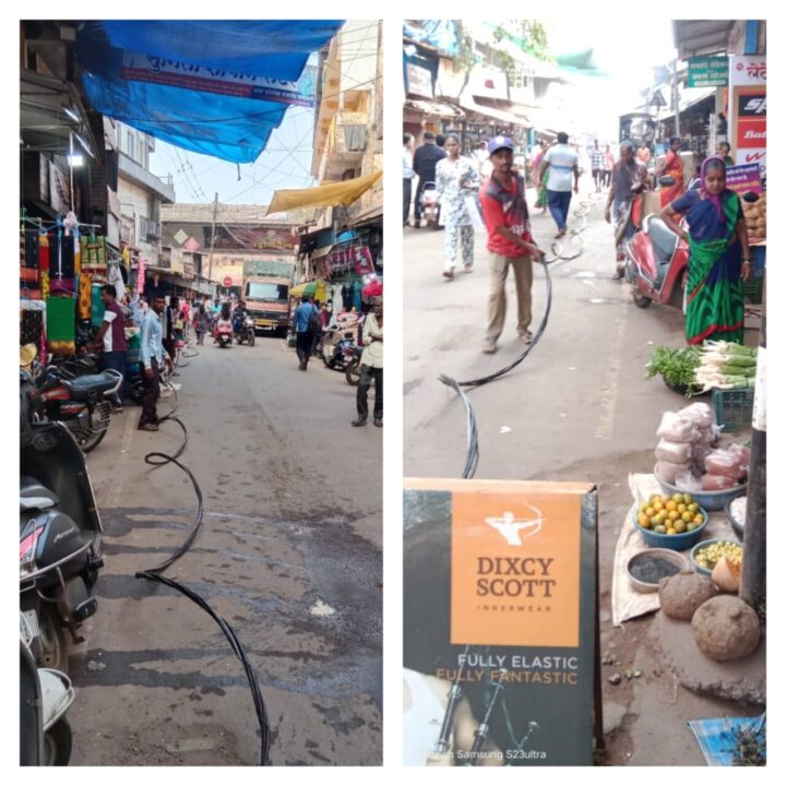 कणकवली बाजारपेठे मधील पोल वरील तारा काढून त्या ठिकाणी “एबीसी” केबल